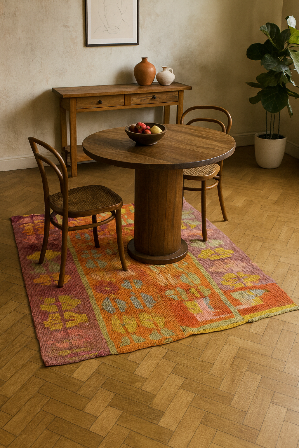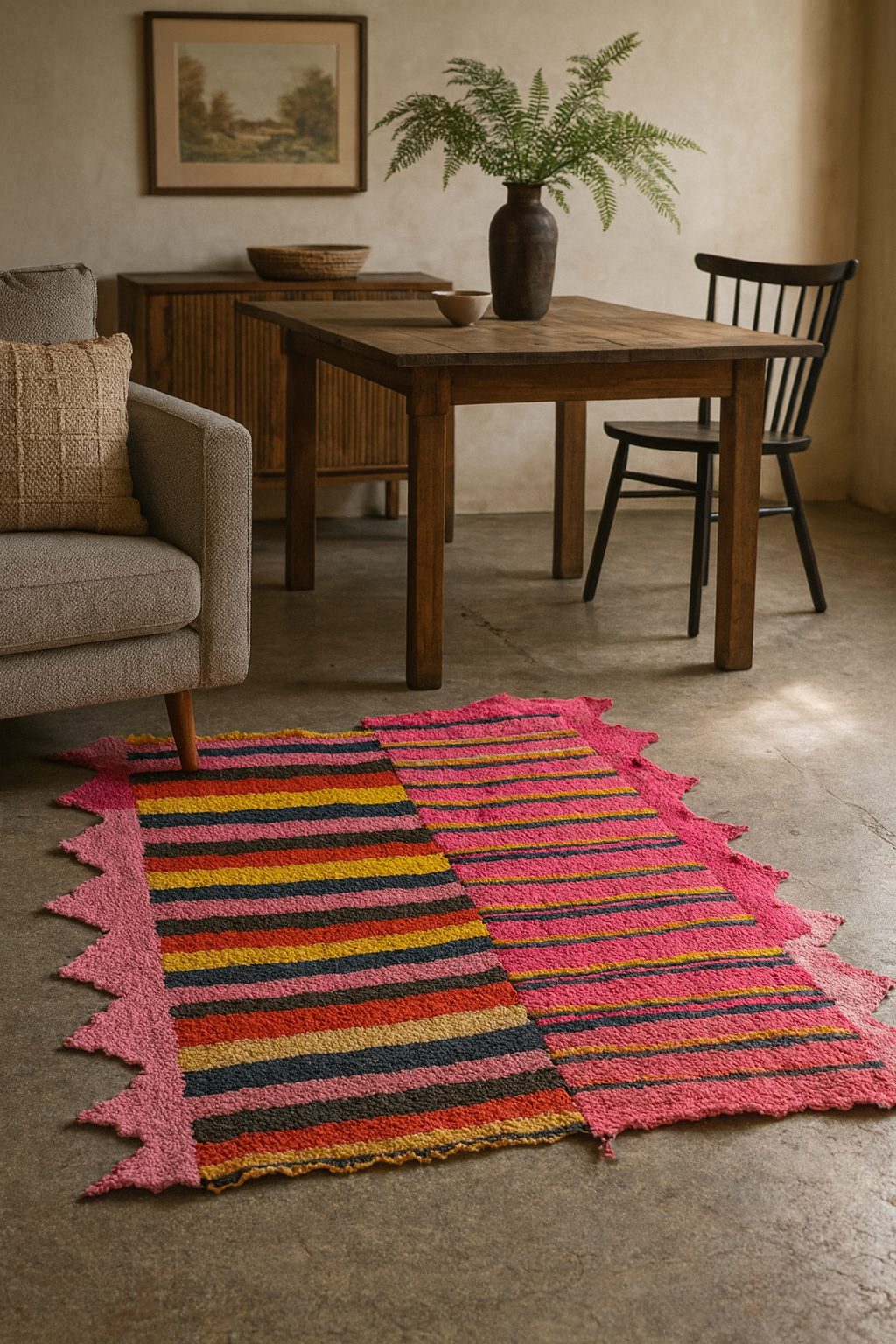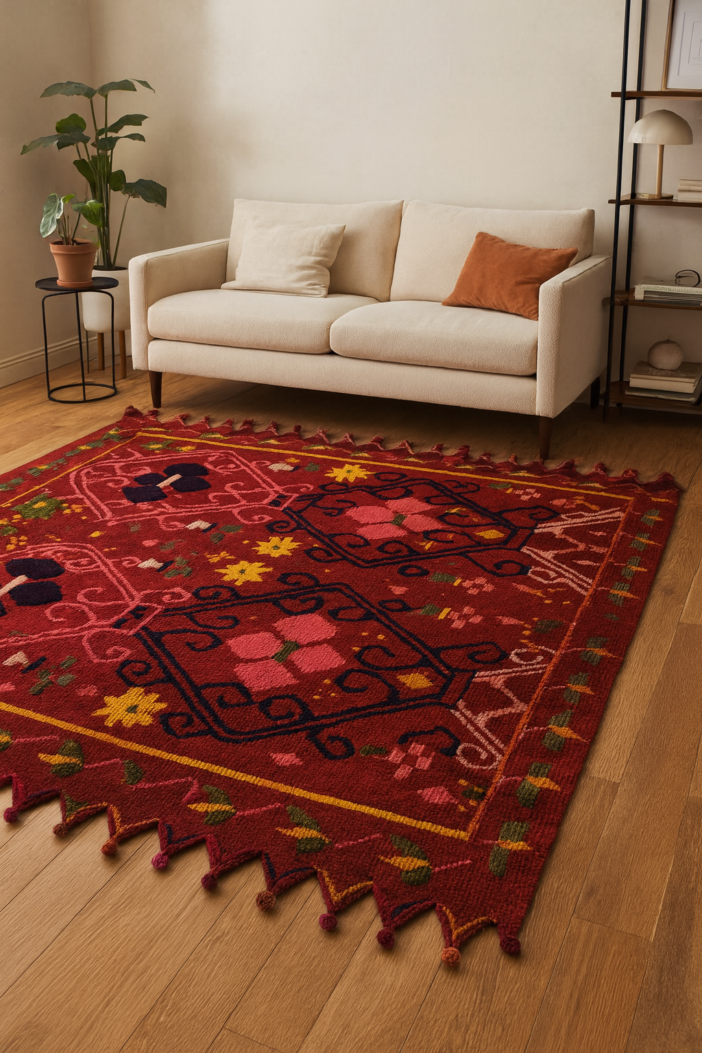 Nos especializamos en la creación de productos textiles que van desde alfombras y mantas hasta tapices y almohadones. Cada pieza es única y elaborada completamente a mano, respetando el conocimiento transmitido de generación en generación por los maestros tejedores. Nuestro compromiso con la sustentabilidad no solo se refleja en el uso de materiales naturales y procesos de producción responsables, sino también en el apoyo continuo a las comunidades rurales de donde provienen estos artesanos.